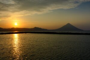 田んぼ、街並み、海のコントラストがいいですねー!